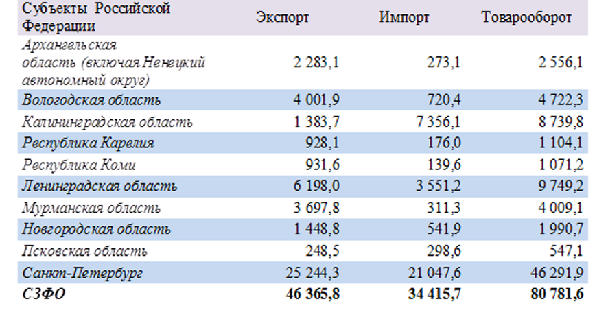 3,37 млрд рублей составили таможенные платежи за экспорт товаров. Это на 1,6 млрд меньше, чем в 2018 году. Основными товарами экспорта стали древесина, металлы, продовольствие и сельскохозяйственное сырье.