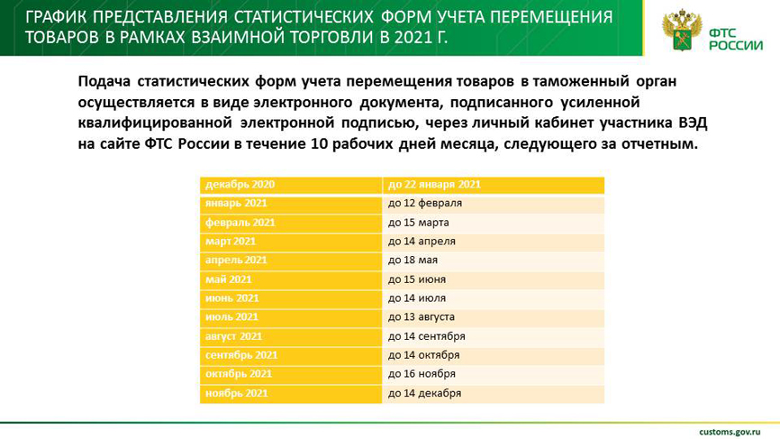 № 289-ФЗ в части закрепления категорий товаров, на которые не представляются статистические формы учета перемещения товаров в рамках взаимной торговли Российской Федерации с государствами – членами Евразийского экономического союза.