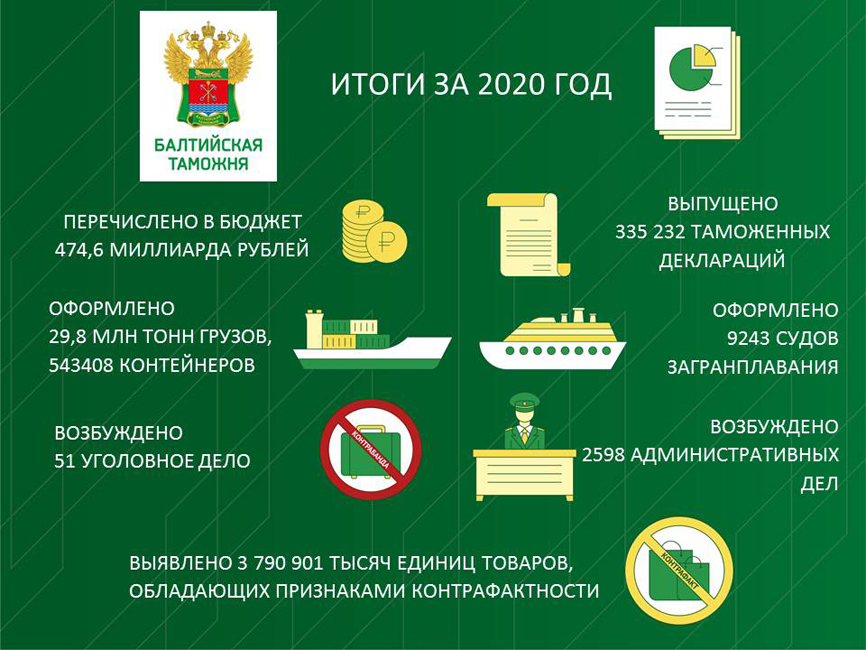 ФТС России сообщает, что за 2020 год года сумма доходов федерального бюджета, администрируемых таможенными органами, составляет 4 751,8 млрд рублей.