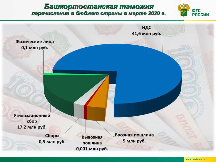 Перечисления Пермской таможней в федеральный бюджет в марте 2020 года составили 237 млн 800 тыс. рублей.