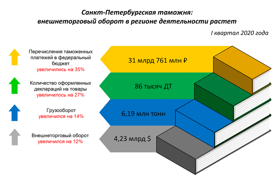 За 3 месяца 2020 года в таможню подано 20,5 тысяч деклараций на товары, что на 24% больше показателя 2019 года, – рассказал начальник Владимирской таможни Павел Павлов. – Доля экспортных деклараций возросла на 19%, а доля деклараций на ввозимые товары - на 28%. За указанный период декларировались 48 тысяч наименований товаров, что на 45% больше, чем в 2019 году.