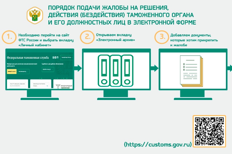 В ведомстве обратили внимание, что подать жалобу в электронном виде можно только через личный кабинет на сайте ФТС России https://customs.gov.ru. По электронной почте не предусмотрена подача жалоб на решение, действие (бездействие) таможенного органа.
