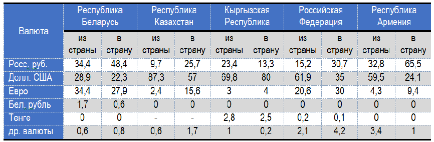 На рис. 2 приведены обобщенные данный о валютной структуре платежей между государствами ЕАЭС.
