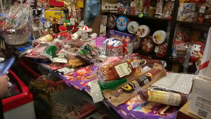 На территории складского помещения была обнаружена и изъята предположительно коммерческая партия сырной и мясной продукции: 16 головок сыра весом 56,4 кг и 67 палок колбасы весом 33,5 кг. Странами происхождения товаров на этикетках значились Польша и Украина.